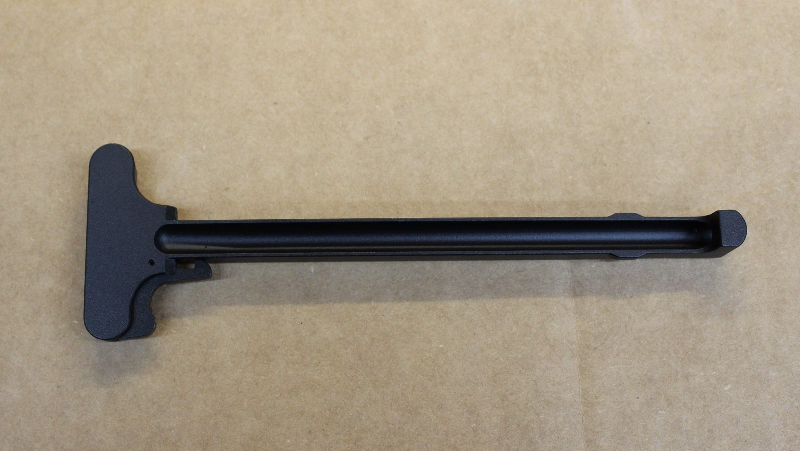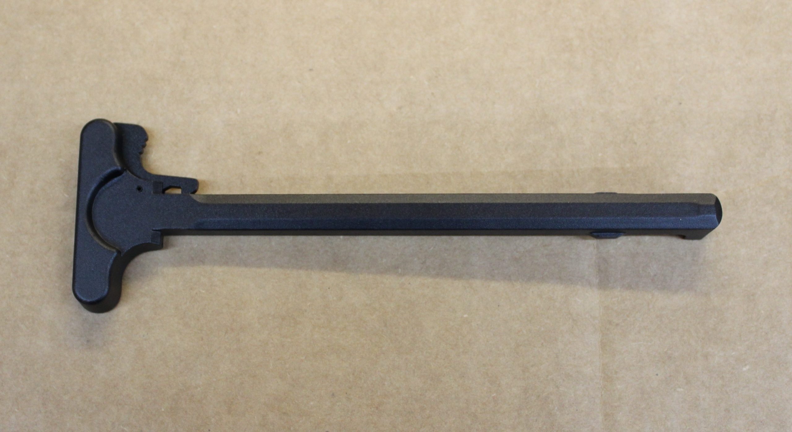 These are standard Economy 6063 aluminum charging handles that have the replacement Tromix extra-power heavy duty latch springs installed.